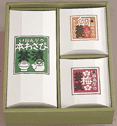 わさび茶漬詰合せ MB-30価格: 3,150円レビュー評価: 0.0 レビュー数:0 田丸屋人気のお茶漬3品を詰合せにしました。ご贈答に最適です。 本わさび茶漬(5.4g×14食)鯛茶漬(7.8g×7食)梅茶漬(6.9g×8食) [静岡県] |